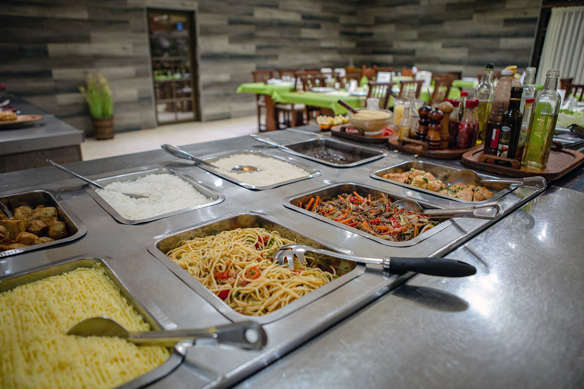 Restaurante con aire acondicionado. Con buffet libre, e incluye postres.
